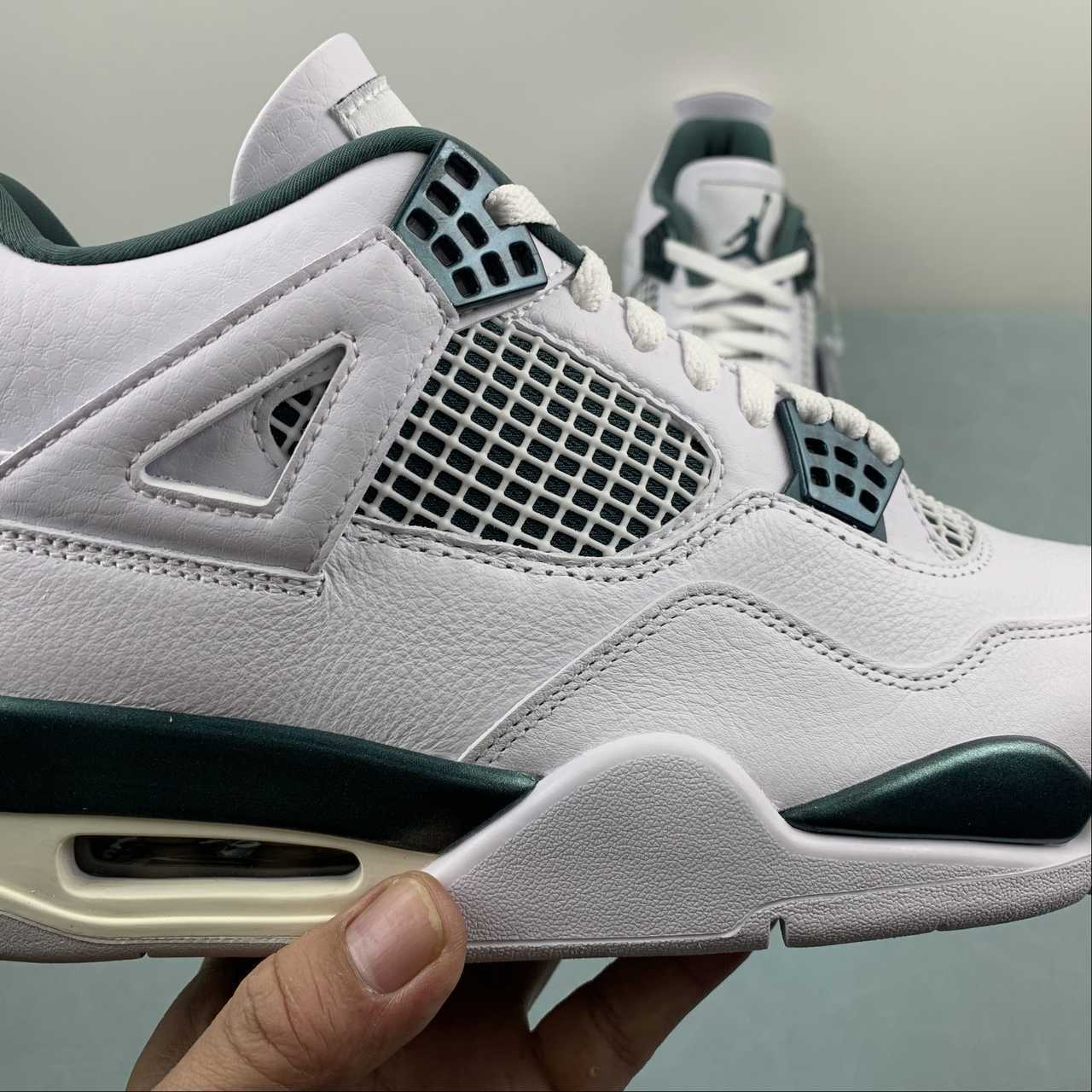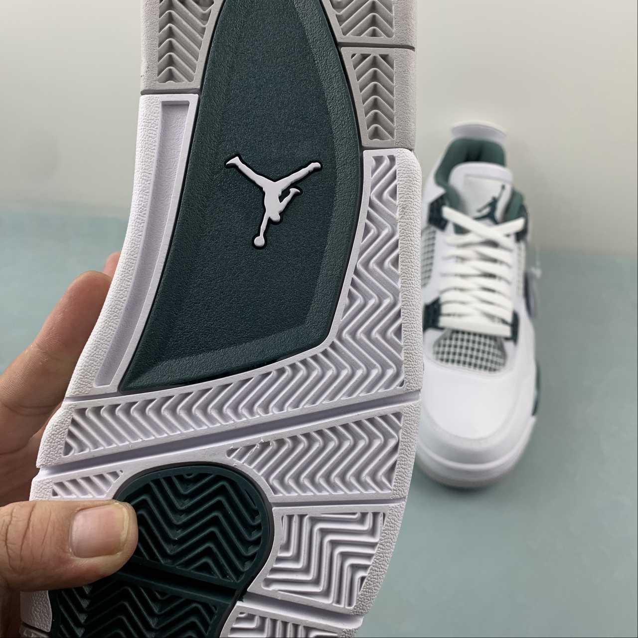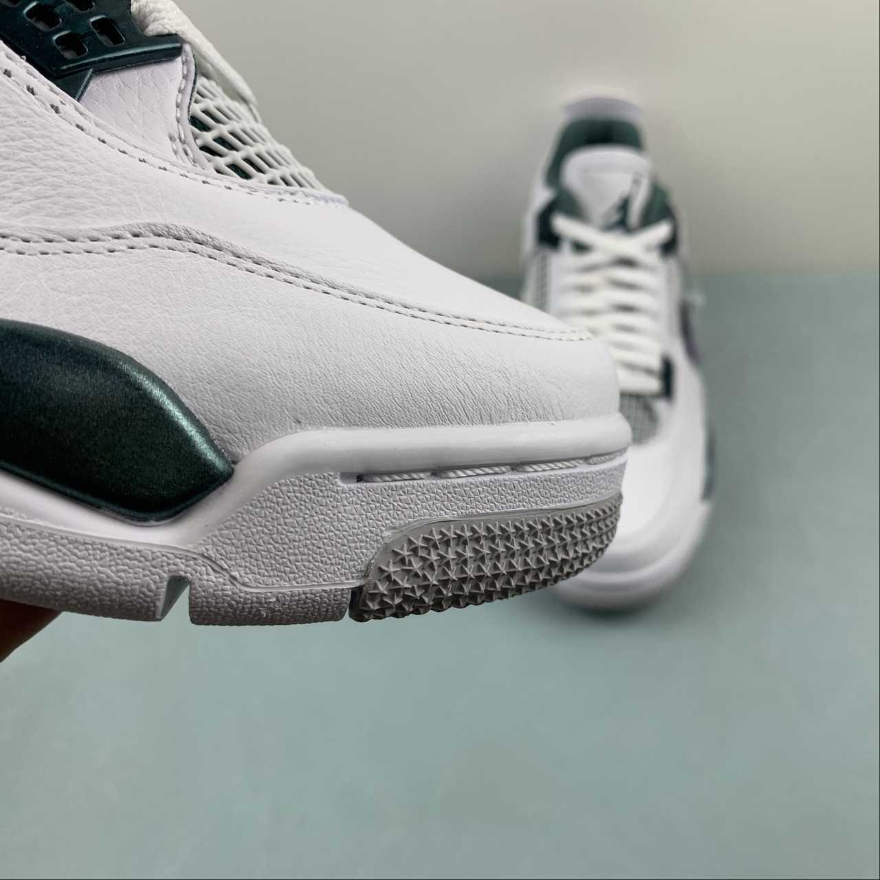 The Nike Air Jordan 4 Retro “Oxidized Green” brings a contemporary update to the classic AJ4 silhouette. It features a clean white leather upper with striking metallic Oxidized Green accents on the eyelets, midsole, and branding. The design stays true to the original 1989 Air Jordan 4 with mesh side panels and floating eyestays, while modern details like premium materials and Nike Air cushioning in both the heel and forefoot deliver comfort and performance heritage. Finished with a durable rubber outsole for traction, this AJ4 is ideal for lifestyle and streetwear looks. :contentReference[oaicite:1]{index=1}